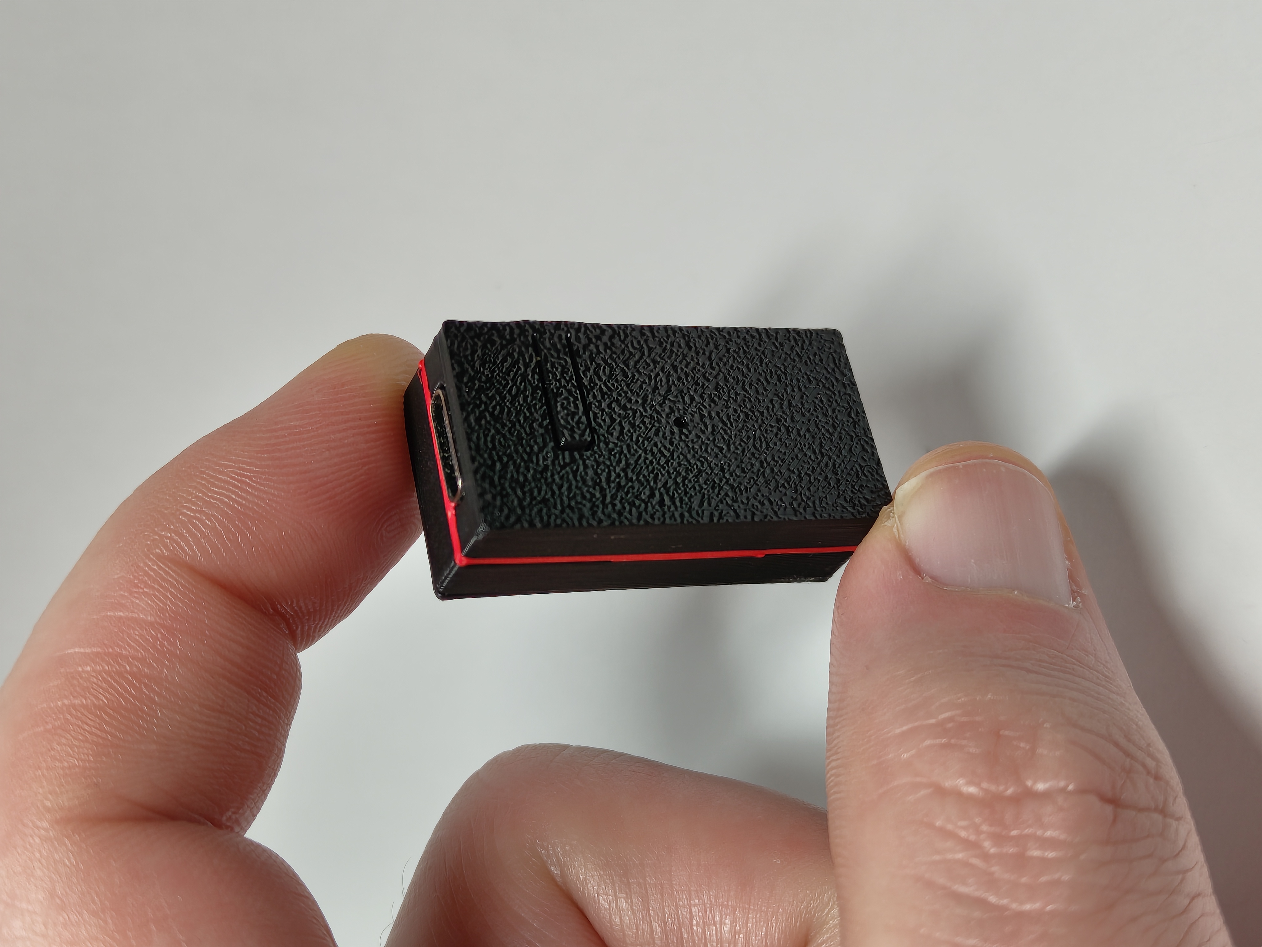 Still, the new battery (and the new case) will mark the completion of this project and make me a very happy man. For the second-gen case, I decided to jazz it up and add a red stripe around it, because it was easy to do and because I think it looks good. Unfortunately, the feature I wanted most (fillets, i.e. rounded corners) wasn’t possible due to the lack of empty space inside the case. I hope the final device will have some more space for fillets, at least.